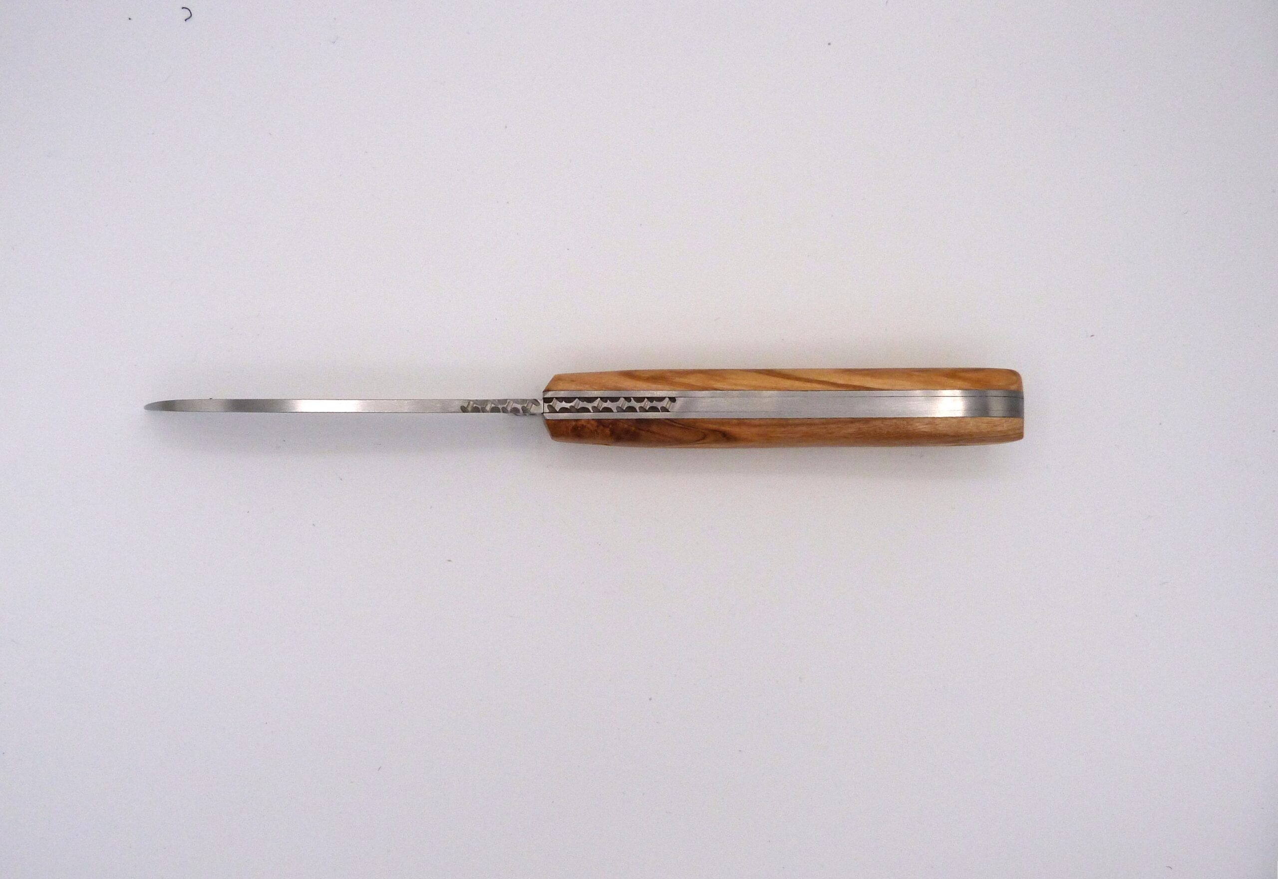 Le bout rond de la lame spécialement étudié pour couper les cordages, permettait aussi d’éviter les graves blessures en cas de gros temps.